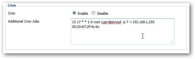 Se você deseja um controle mais específico sobre quando seu computador desperta, o DD-WRT permite que você configure tarefas cron para este processo. Vá para Administração> Gerenciamento e role para baixo até a seção Cron.