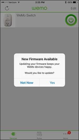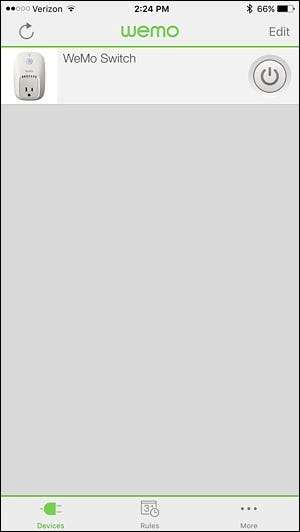 Seu interruptor WeMo agora aparecerá na lista na página principal do aplicativo e você pode começar a controlar o interruptor imediatamente.