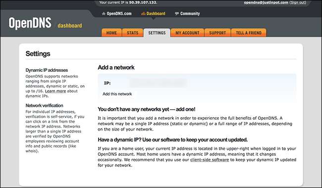 A menos que você tenha pago especificamente por um endereço IP estático, provavelmente não tem um. Felizmente, o OpenDNS oferece software para rastrear a mudança de endereço - você só terá que instalá-lo em um dos computadores de sua casa e isso fará com que o OpenDNS continue trabalhando em todos os outros.