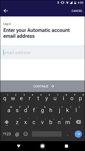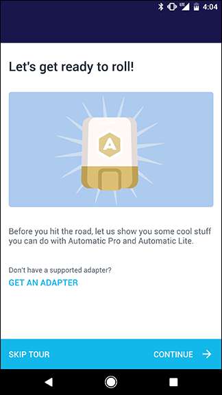 Abra o aplicativo Automático em seu telefone. Não conecte seu adaptador automático ainda. Na primeira vez que você abrir o aplicativo, verá um tour pelos recursos do Automático. No final, toque em Criar conta (ou faça login se você já tiver uma conta automática).