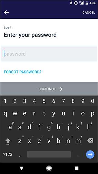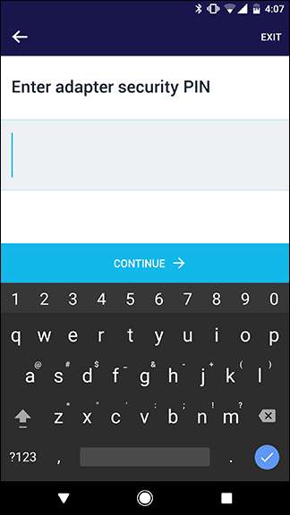 Na parte de trás do seu adaptador automático, você deve ver um código de seis caracteres. Digite isso no seu telefone e toque em Continuar.