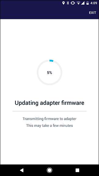 Seu adaptador deve se conectar ao telefone automaticamente. Se houver uma atualização para o firmware do adaptador (e provavelmente há), o download será feito agora. Aguarde a instalação do firmware antes de continuar.