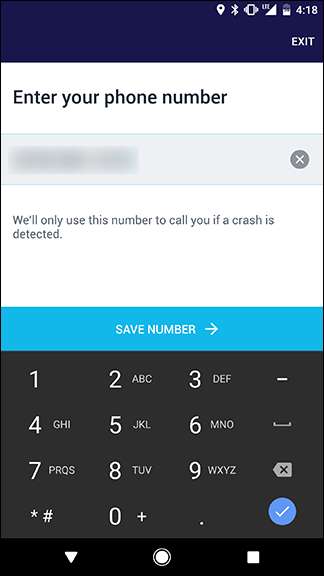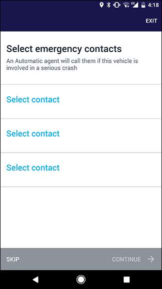Em seguida, você precisará configurar o serviço Crash Alert. Esta é a parte do serviço da Automatic que irá ligar para você e enviar serviços de emergência se detectar uma falha. Toque em Continuar.