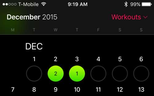 Olhando para seus treinos, você pode tocar em qualquer dia destacado em verde e ver seu (s) treino (s) para aquele dia.