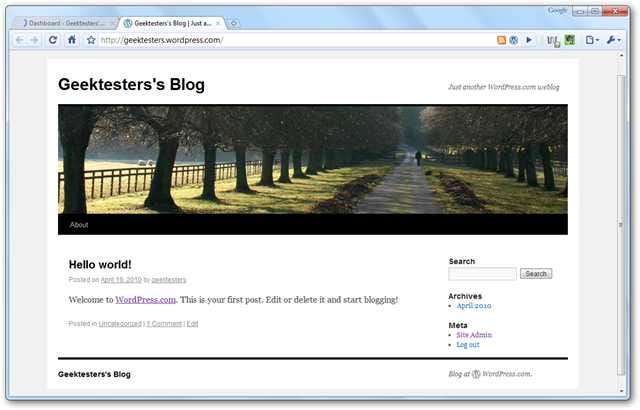 Você pode visualizar seu novo blog imediatamente, embora o tema padrão não seja muito interessante sem seu conteúdo e fotos.