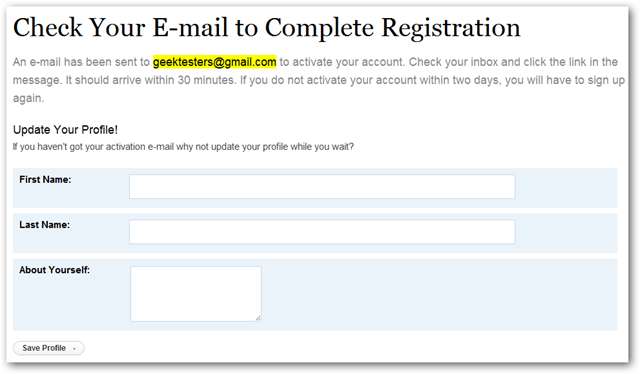 Depois de clicar em inscrição, você receberá um e-mail de confirmação. Enquanto espera o e-mail chegar, você pode inserir seu nome e uma pequena biografia sobre você.