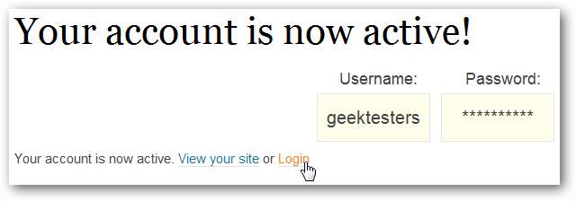 De volta à página que você abriu no e-mail, clique em Login para acessar a página de administração do seu blog e começar a adicionar coisas a ele. Você também pode acessar a página de administração do seu blog a qualquer momento em seu nome .wordpress.com / admin, substituindo o nome do seu próprio blog por seu nome .