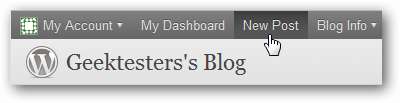 Ou clique no botão Novas postagens na parte superior da página. Esta barra de menu está sempre visível quando você está conectado, por isso é uma maneira fácil de adicionar uma postagem.