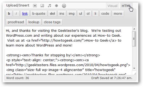 Se você for um geek de código, clique na guia HTML no editor e edite o HTML da postagem do seu blog da maneira geek.