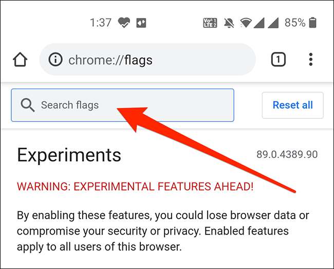 A tela de bandeiras do Chrome será aberta. Nesta tela, toque na caixa de pesquisa no topo e digite "screenshot incógnito" (sem citações).
