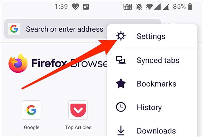 Quando o Firefox abre, toque no menu (os três pontos) no canto superior direito da tela e selecione "Configurações".