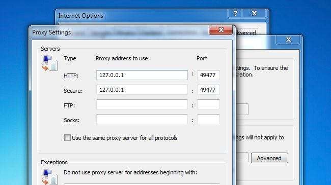 Quase todos os aplicativos usam o proxy do sistema, que na verdade está no painel Opções da Internet. Este proxy funciona para aplicativos como Google Chrome e Internet Explorer, bem como muitos ou a maioria dos outros aplicativos que requerem acesso à Internet. Certos aplicativos, como o Firefox, podem definir suas próprias configurações de proxy de forma diferente.