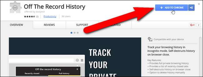 Para instalar Off The Record History, visite a página da extensão da web e clique em “Adicionar ao Chrome”.