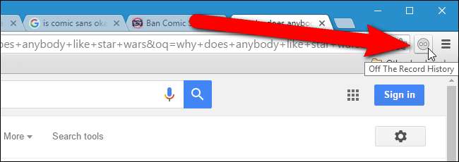 Navegue como faria normalmente na janela anônima. Para ver o seu histórico de navegação, clique no botão “Off The Record History” na barra de ferramentas.