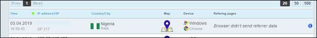 Você verá uma lista de todos os endereços IP que acessaram o link, de qual local eles são e, possivelmente, o navegador que estão usando.