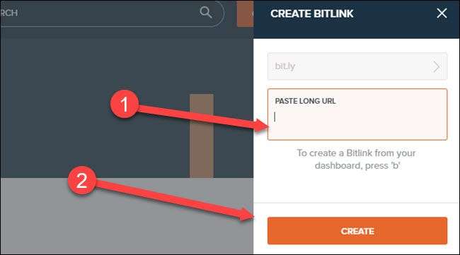 Clique no botão “Criar” no canto superior direito do site Bitly.