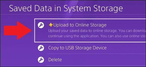 A partir daí, escolha "Upload para Armazenamento Online". Esta opção tem um pequeno símbolo PlayStation Plus ao lado dele.