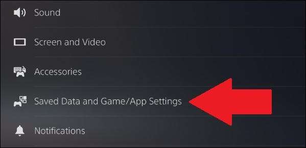 Em seguida, conecte o dispositivo USB ao seu PS5 e vá para "Configurações". Role para baixo para "Dados salvos e configurações de jogo / aplicativo".