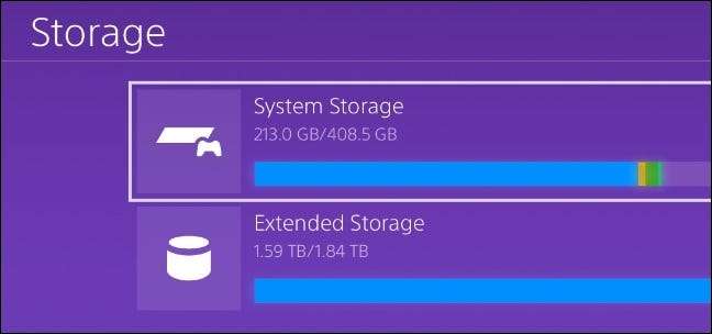 Encontre o menu "Storage" e selecione "Armazenamento do sistema". Seu HDD externo deve estar aqui como "armazenamento estendido".