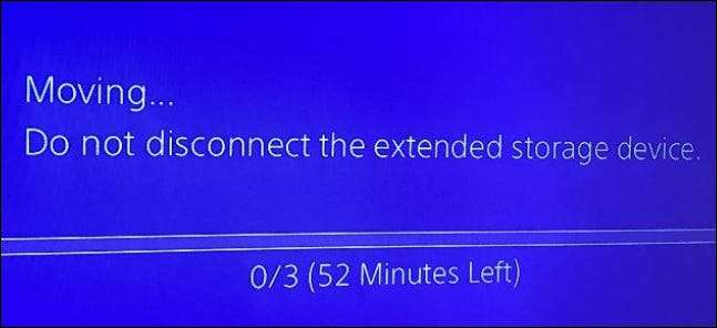 O PS5 lhe dará uma hora prevista que levará para transferir os dados salvos. Isso será feito em primeiro plano, o que significa que você não pode usar o PS5 até que seja feito. Uma vez que seja, você pode usar o PS5 enquanto os jogos e aplicativos download em segundo plano.