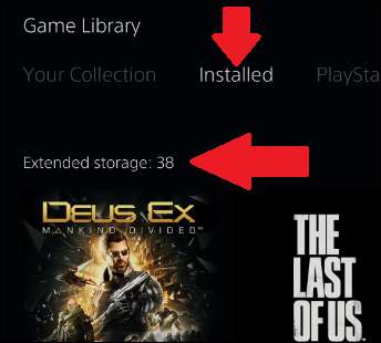 Mude para a guia "Instalada" e role para baixo. Os jogos instalados no armazenamento do console aparecerão primeiro, mas abaixo serão os jogos no armazenamento estendido.