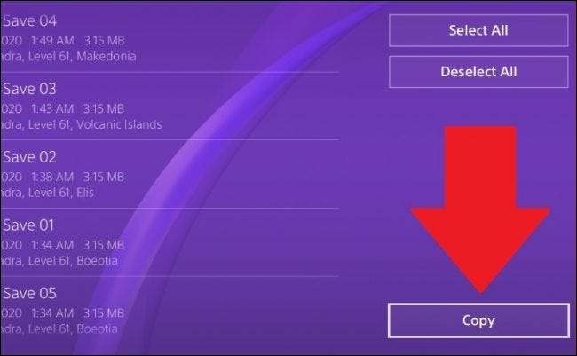 Selecione os salvos de sua escolha e, em seguida, pressione "Copiar". Isso colocará os jogos no seu dispositivo USB.