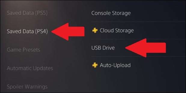 A partir daí, vá para "Dados salvos (PS4)" e selecione "USB Drive".