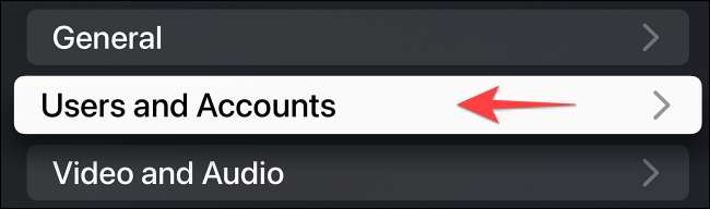 Selecione "Usuário e Contas".