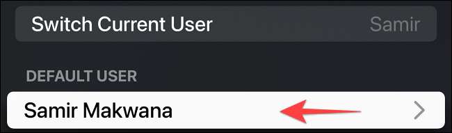 Selecione a conta de usuário na seção "Usuário padrão".