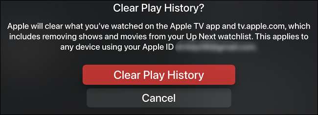 Escolha o botão Vermelho "Limpar Play History" na página de confirmação.