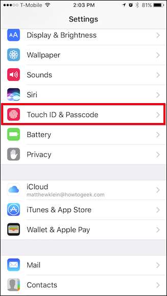 Depois de abrir as configurações do Touch ID e senha, role para baixo até a seção que diz “Permitir acesso quando bloqueado”.