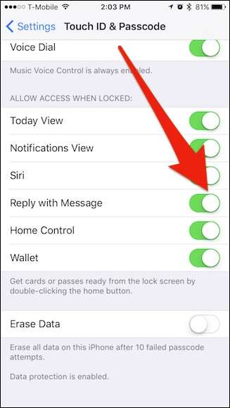A opção que mais nos interessa, porém, é “Responder com Mensagem”. Toque nisso para que você (ou qualquer outra pessoa) não possa mais responder às mensagens da tela de bloqueio do iPhone.