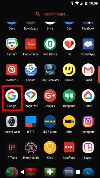 Todo telefone Android tem o Google App instalado por padrão, já que isso se tornou uma parte central de como o Android funciona neste momento. Então vá em frente, abra a gaveta do aplicativo e procure por “Google”. Lance-o.