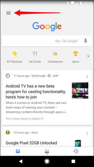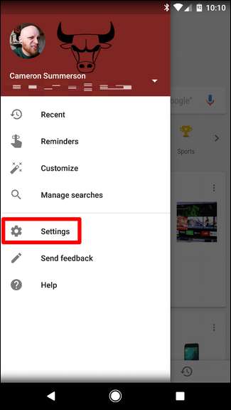 No Google app, toque nas três linhas no canto superior esquerdo (ou deslize apenas do lado esquerdo. Toque em “Configurações”.