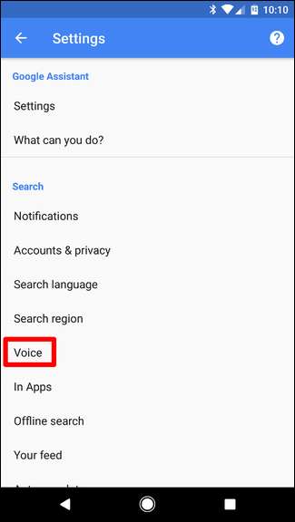 Se seu dispositivo tiver Google Assistente, você pode acesse essas configurações aqui se desejar, mas estamos procurando uma opção mais geral: Voz. É cerca de três quartos do caminho para baixo neste menu.
