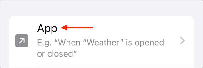 Agora, da lista de gatilhos, toque na opção "App".