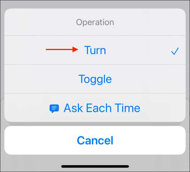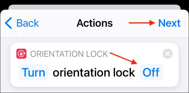 Em seguida, toque no botão "ON" para que ele mude para as configurações "OFF". O atalho agora está completo. Toque no botão "Next".