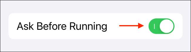Por padrão, a automação de atalho enviará uma notificação que você terá que tocar para acionar a automação. Toggle fora da opção "Perguntar antes de executar" para desativar esse recurso.