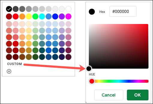Em seguida, você pode escolher as cores do tema. Para cada opção, selecione uma cor da paleta ou clique em "Personalizado" para Digite um código hexadecimal ou use o slider de sombra para a cor exata desejada.