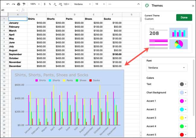 Se você quiser adicionar consistência e uma aparência atraente à sua planilha, considere usar um tema. No Google folhas, você pode selecionar um tema premade, bem como personalizar um para caber seu estilo.