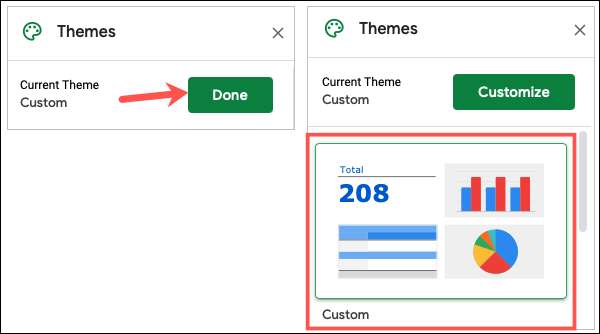 Quando terminar, clique em "Concluído" no topo da barra lateral. Você também notará que o nome do tema muda para personalizado e esta opção é exibida na parte superior da lista.
