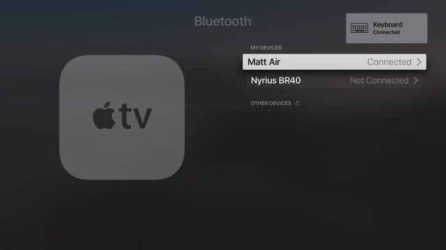 Você precisa se certificar de que o Bluetooth está ativado em seu Mac e, em seguida, selecioná-lo na tela Bluetooth da Apple TV.