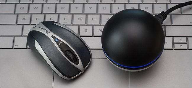 Embora o DWA-192 seja um pouco mais volumoso do que muitos adaptadores skinny plug + antena Wi-Fi, ele não é particularmente grande. A esfera tem 3,15 ″ de diâmetro (um pouco maior que uma bola de beisebol) e, vista na foto acima ao lado do Microsoft Bluetooth Mouse 5000 mais vendido (um dispositivo compacto por si só), você tem uma noção de sua escala. Embora seja realmente mais para uso doméstico do que para viagens, ele é surpreendentemente bem embalado porque não há antenas para fora e, portanto, não há preocupação de que elas dobrem ou quebrem.