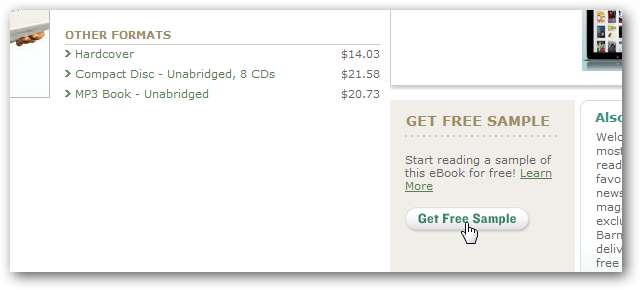 Aqui está a página de detalhes, mostrando mais informações no Nook para PC sobre o livro de amostra que baixamos.