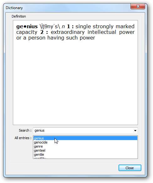 Aqui está o dicionário incluído que abriu quando procuramos uma palavra. Muito conveniente!