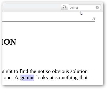 O Nook também permite que você pesquise o conteúdo do seu eBook no canto superior direito do aplicativo.