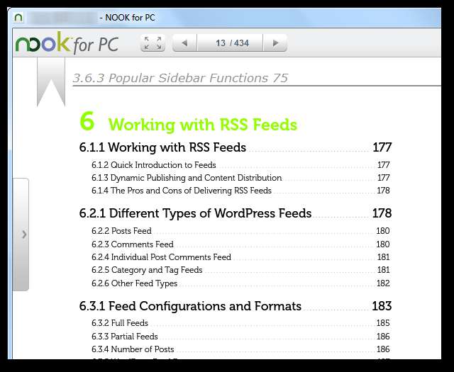 Aqui está um e-book em PDF no Nook para PC. Uma coisa boa é que ele lembra automaticamente sua posição atual no livro, para que seus e-books importados funcionem exatamente como seus e-books do Nook.