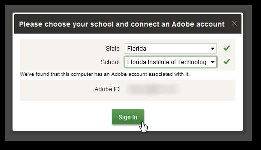 Em seguida, selecione um estado e uma escola e clique em Assinar em . O estudo do NOOK será integrado à sua Adobe ID, se você tiver uma, para que também possa ler arquivos PDF protegidos por DRM.