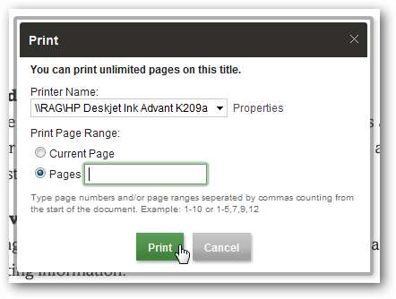 Select eBooks também permitem imprimi-los, que é um ótimo recurso não incluído no aplicativo Nook para PC padrão. A maioria dos livros inclui limitações nos direitos de impressão, portanto, verifique as informações do livro para ver o que você pode fazer com ele.