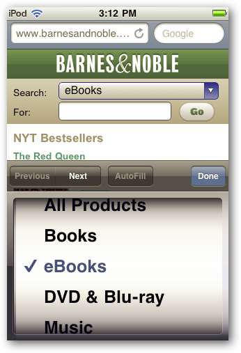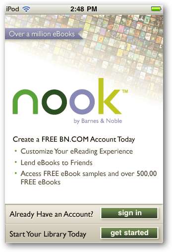 O Nook também está disponível para iPhone, iPad e iPod Touch. Basta baixar a versão correta para o seu dispositivo. Aqui, nós o vemos rodando em um iPod Touch.